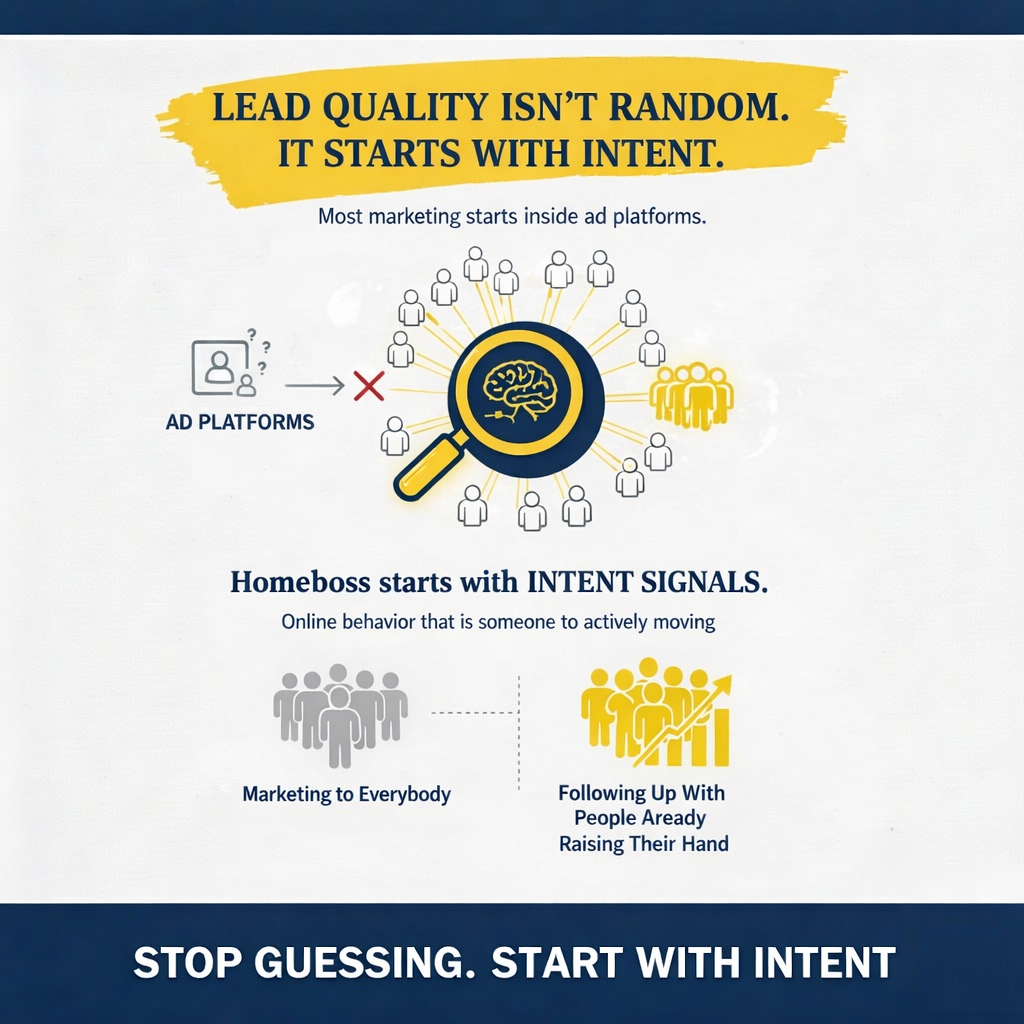 Homeboss starts with intent signals—online behavior that indicates someone is actively moving toward buying or selling.