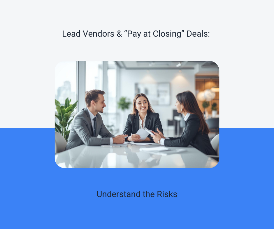 Pay 40–45% referral fees to lead vendors and “pay-at-closing” vultures
