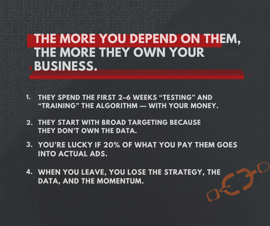 Hire agencies that charge $1,500–$3,000/month to “manage” Facebook & Google ads
