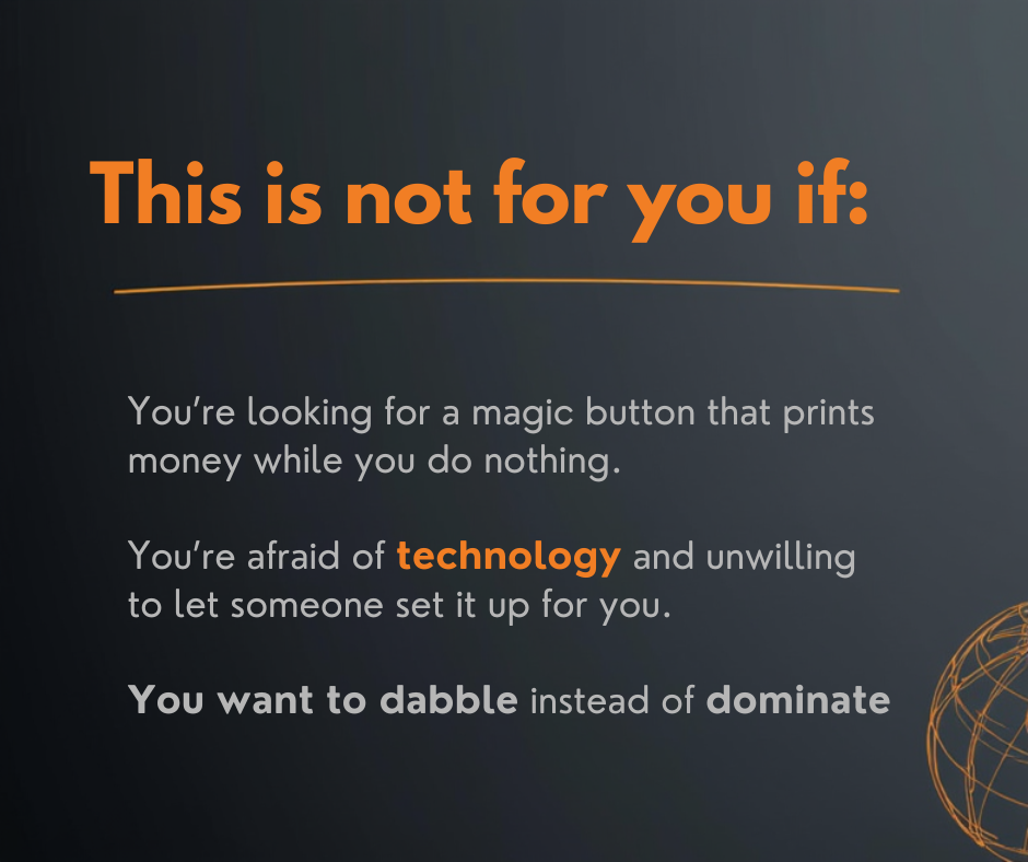 If you’re brand new and you’re not willing to invest anything into your business, this isn’t for